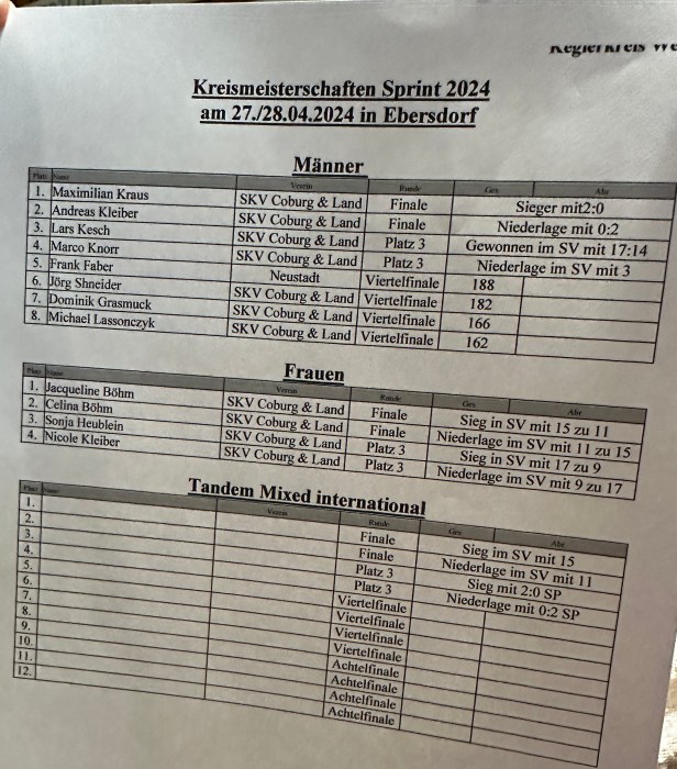 Jacpueline Böhm wird vor Celina Böhm Kreis ( beide TSV Lahm ) Meisterin der Frauen , Sonja Heublein und Nicole Kleiber (Beide SKV Coburg & Lahm) belegen Platz 3 + 4 .