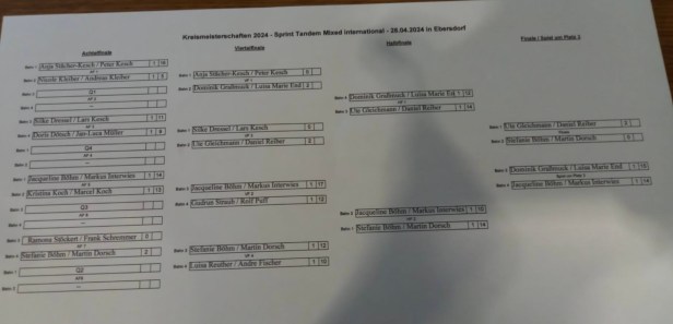 Bei den Kreismeisterschaften Sprint Mixed in der Frankenland – Halle Ebersdorf stehen die Sieger 🏆 fest . Das Team Ute Gleichmann & Daniel Reiber ( KV Bad Rodach ) konnte sich gegen Stefanie Böhm & Martin Dorsch ( TSV Lahm ) im Finale mit 2:0 durchsetzten.