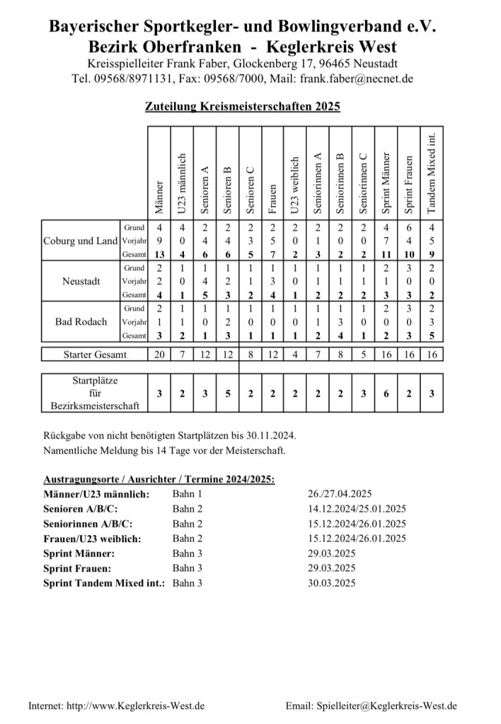 Allgemein Zuteilungsschlüssel Einzelmeisterschaften 2024 / 2025 Datum: 8. Oktober 2024Autor: Andreas Kleiber 0 Kommentare Screenshot Teilen mit: Auf WhatsApp teilen (Wird in neuem Fenster geöffnet) WhatsApp Gefällt mir Wird geladen … Ähnliche Beiträge
