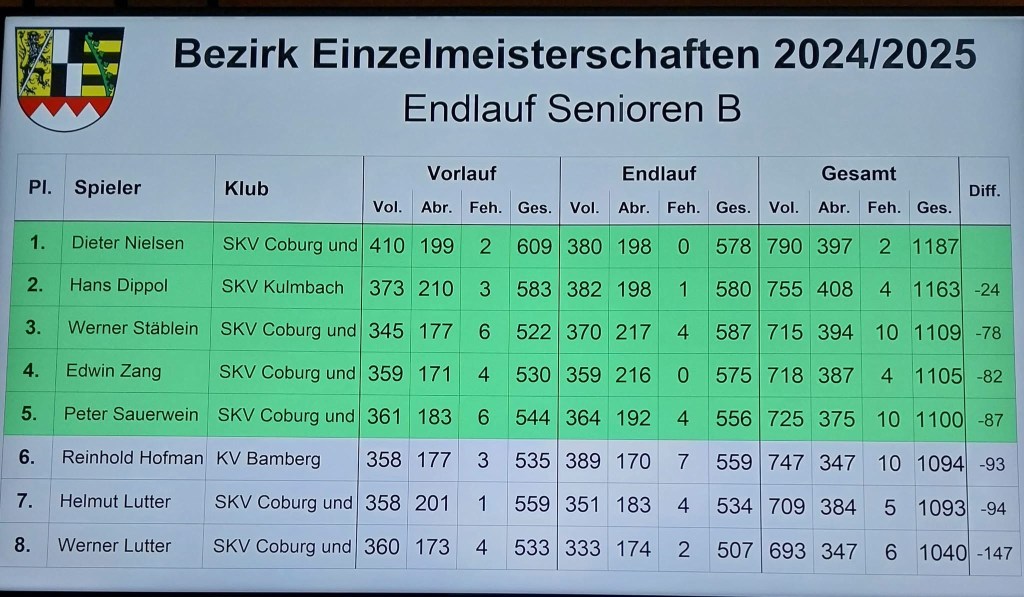 BAMBERG . in der vollen Hütte bei der TSG 2005 Bamberg finden zur Zeit die Bezirksmeisterschaften statt . Am Vormittag suchten die Seniorinnen ihre Meisterinnen.